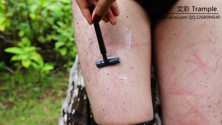 【内容简介】:小亭子里调教奴隶,用绳子绑着拿树枝抽、戳乳头;捆绑在树上;居然还拿来了剃须刀给奴刮腿毛和腋毛,刮得一片红的,看着都难受