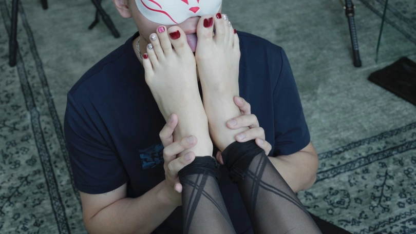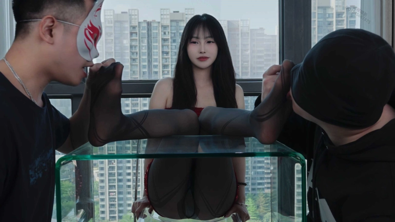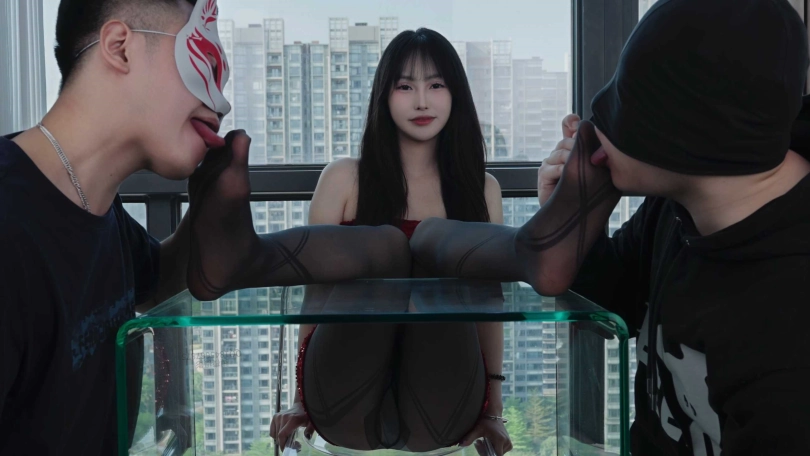 【脚模摄影】129广州唐嫣涞觅黑绷带丝袜长靴双男主闻舔