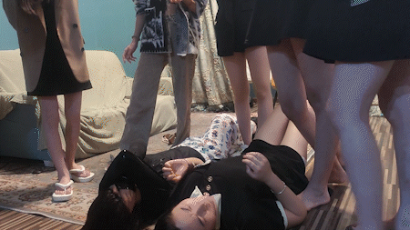 内容:校园暴力剧情,青春靓丽的五位美少女校园霸凌她们的两位室友,踩踹,让她们舔脚,转胯,互扇耳光,最后间接强制灌圣水,圣水洒一脸。