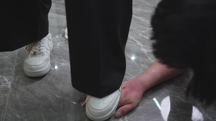双人全体重各碾踩一只脚,狗子说冰冰主子的鞋底有沙子,所以碾压时剧痛到不行,仅仅几分钟,手背上干出来一道长长的血口子,但是冰冰主子好像更兴奋了,我猜的没错,不会停的 只会变本加厉,鞋底的泥巴继续在伤口上混合碾踩,狗子的叫声转变了好几个音调。