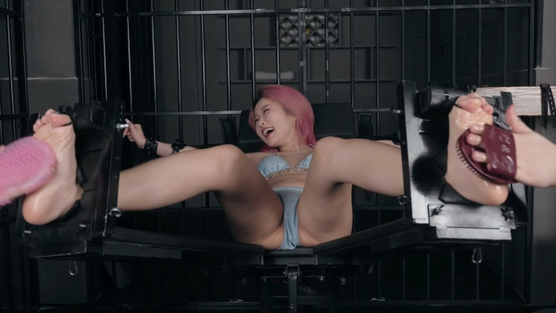 还是一如既往的怕痒、敏感。脚摄师傅准备好好的照顾她,把她绑在刑椅上,用各种道具挠她,还强制天她腋下。看她挣扎的样子,太爽了。
