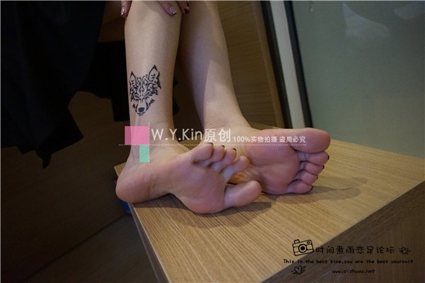 【W.Y.Kin】Winki超像裸婚时代姚笛的纹身女生裸足+黑丝,腿上纹了一匹狼
