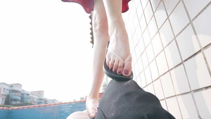 樱崎分别用裸足和穿平底人字拖踩踏瘦狗,承受着主人重量的瘦狗身体扭曲着,樱崎却只是冷酷地看着,任凭美脚不断落下...