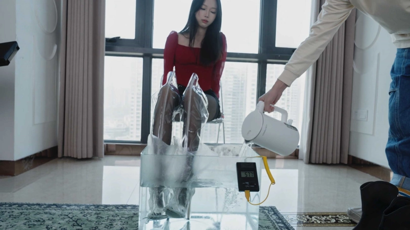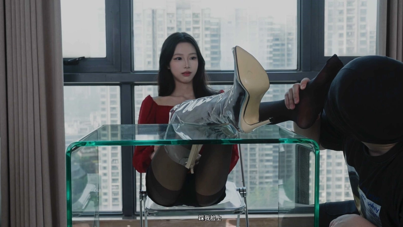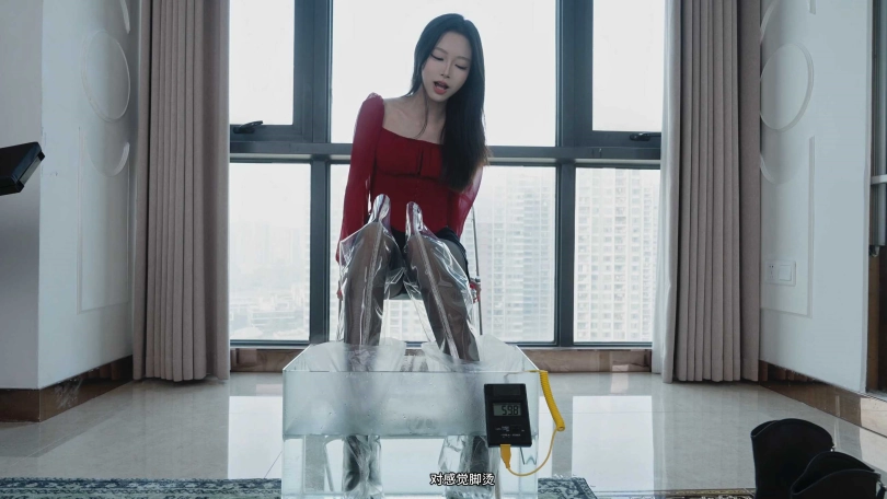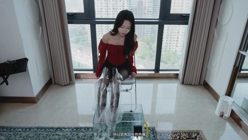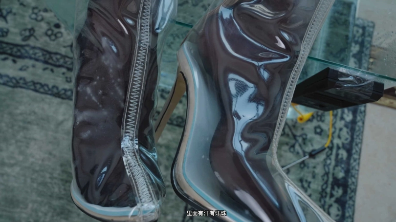 那我也要玩花的,让她穿上透明长靴(已除味无异味),让她穿着黑丝长靴泡脚。