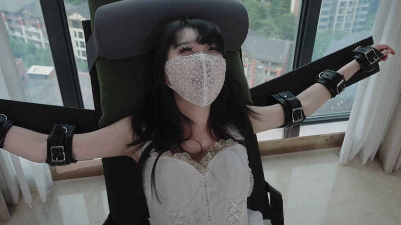 这里很敏感,戾猫又痒又羞涩地叫出了声。再把她绑在椅子上,用震动爪子痒她,她难以忍受这个声音和震感。