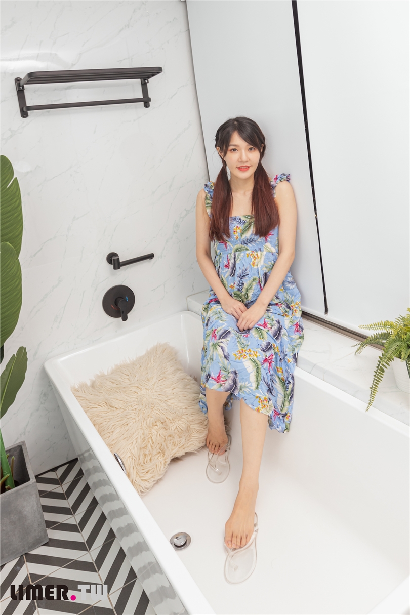洗澡前 apple 用腳趾玩弄著透明夾腳拖